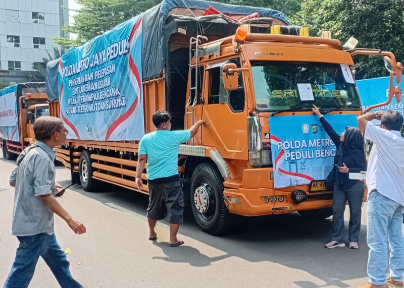 JAKARTA-– Polda Metro Jaya memberangkatkan bantuan kemanusiaan untuk korban bencana alam di Aceh, Sumatra Utara (Sumut), dan Sumatra Barat (Sumbar). Pelepasan bantuan dilakukan di Mapolda Metro Jaya, Senin (1/12) siang, dipimpin Kapolda Metro Jaya didampingi Ibu Ketua Bhayangkari Daerah Metro Jaya dan Wakapolda Metro Jaya serta Ibu Wakil Ketua Bhayangkari Daerah Metro Jaya.